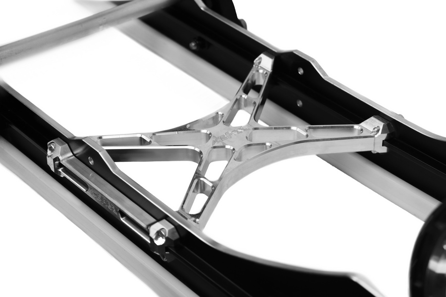 Strengthen your IceAge BOMBER rails even further with the IceAge billet X-Brace. Provides increased torsional strength that far exceeds that of cross shafts or rail stiffeners alone! Designed to mount between the rear suspension torque arm and rear idler wheels this brace has a massive footprint providing great rigidity in the rear suspension.